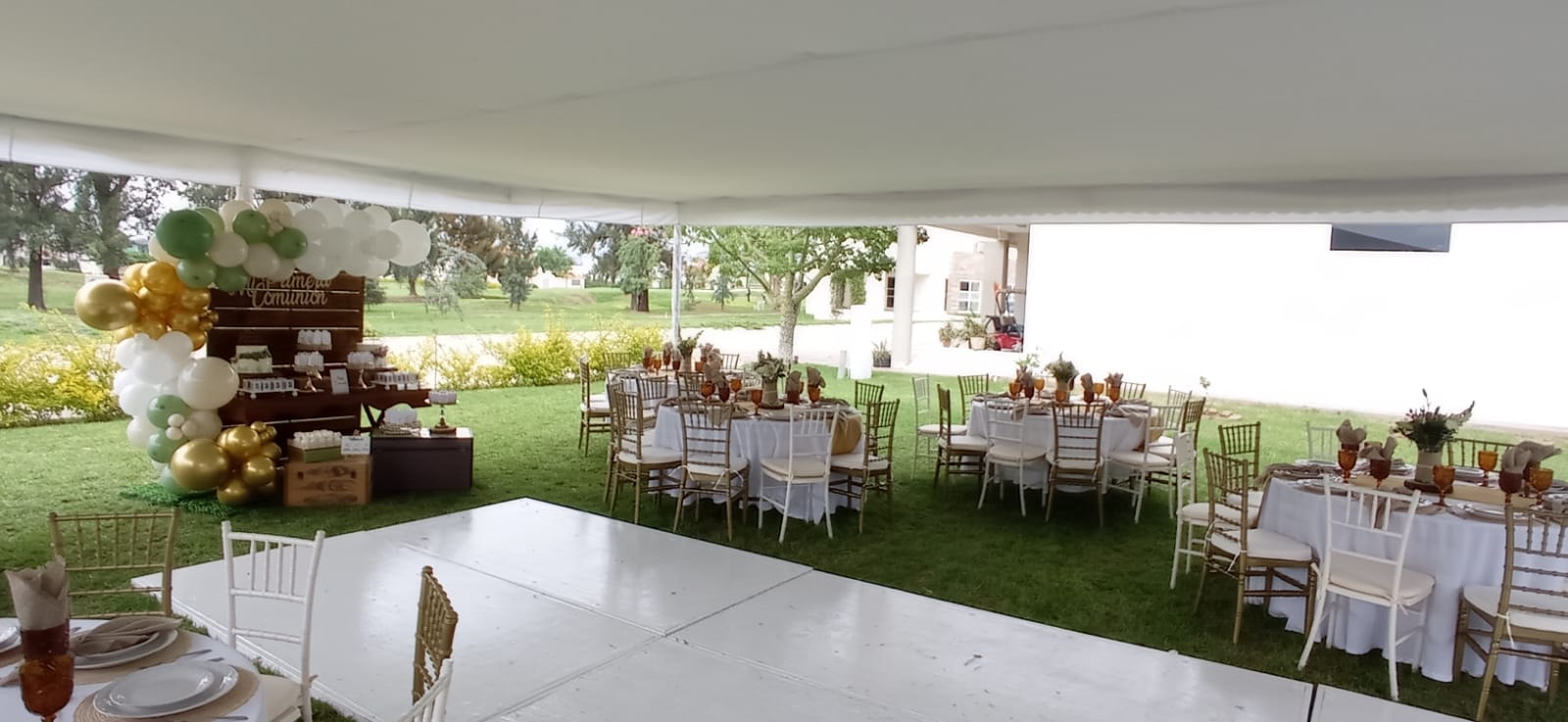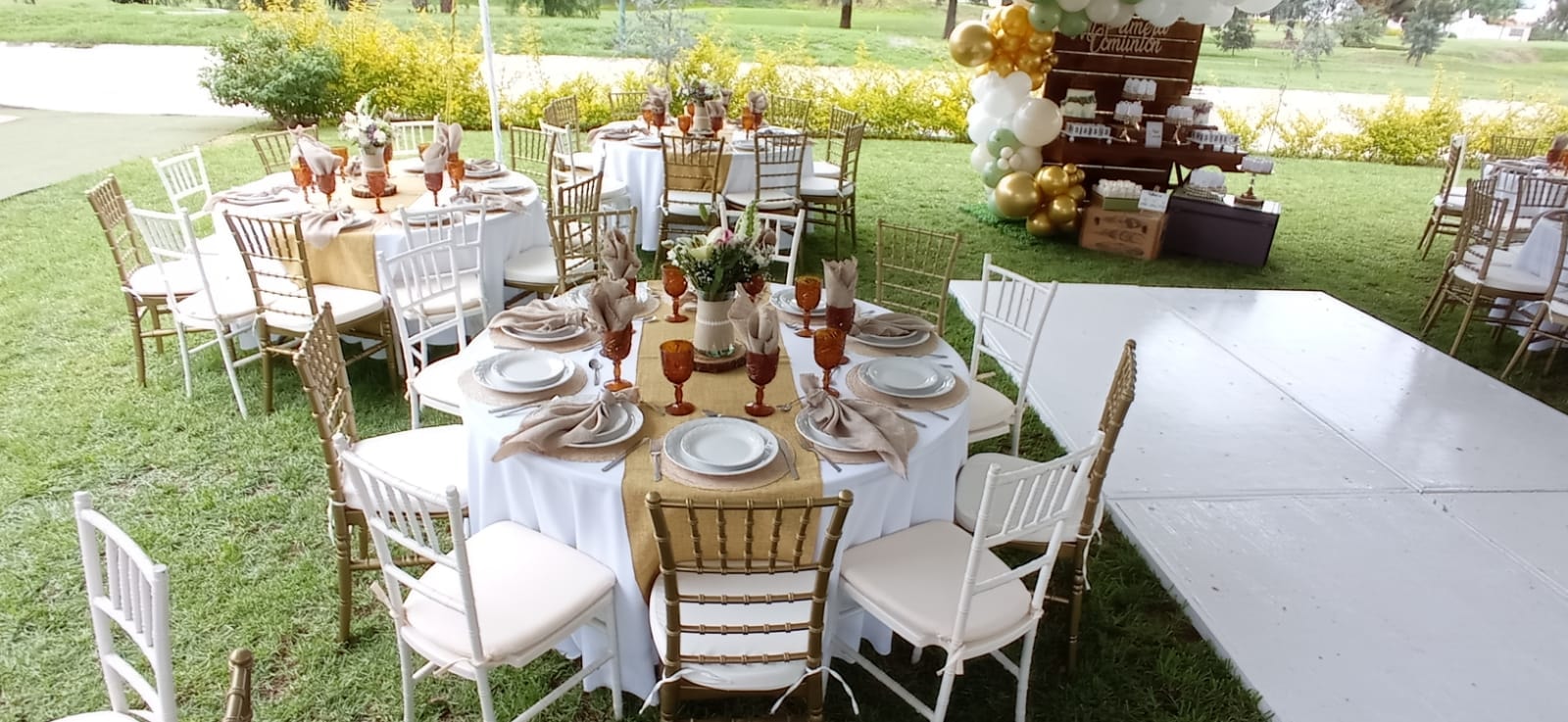 - Renta de mobiliario (mesas, sillas, carpas y pista de baile).